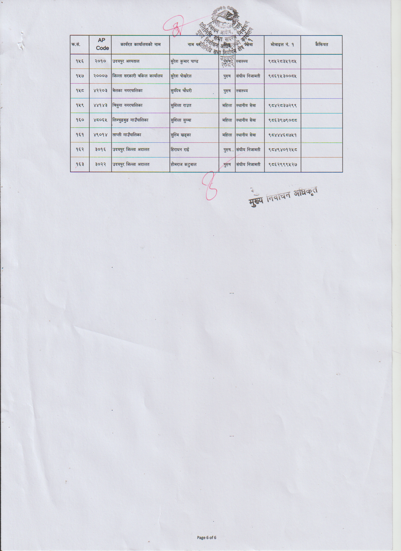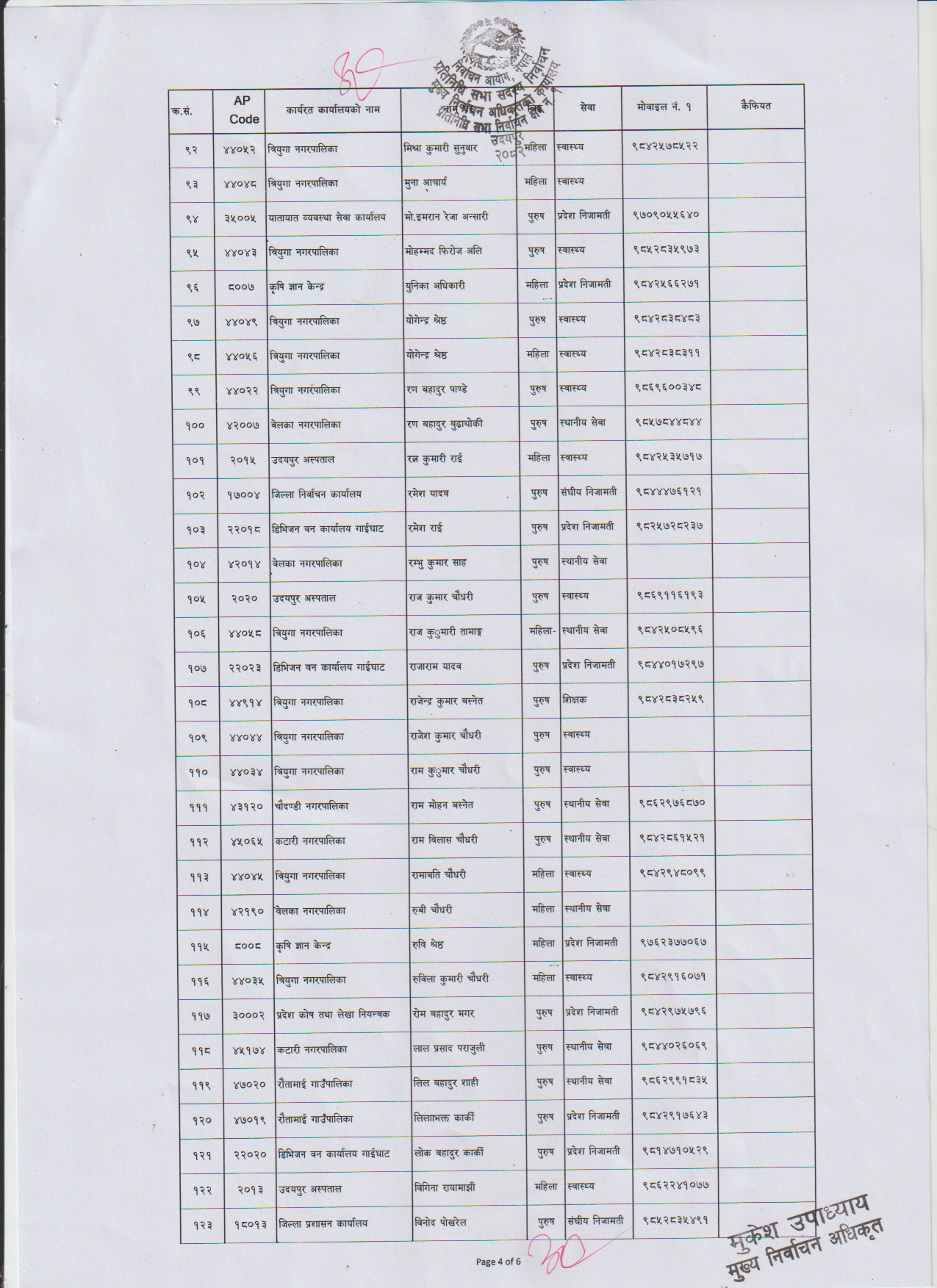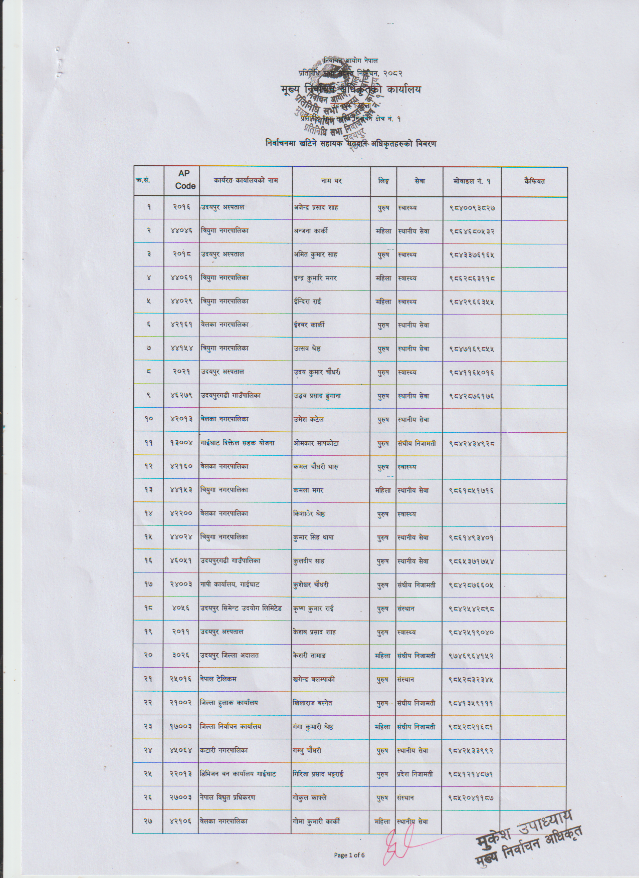 उदयपुरकाे उदयपुर निर्वाचन क्षेत्र १ मा सहायक मतदान अधिकृतकाे लागि १६३ जनाकाे नाम ताेकिएकाे छ । १६० मतदान केन्द्र रहेकाेमा तीनजना बढी नाम सुची सार्वजनिक गरिएकाे हाे । उनीहरुलाइ तालिममा सहभागि गराउने तयारी रहेकाे जिल्ला निर्वाचन कार्यालय उदयपुरका निर्वाचन अधिकारी दिपक दाहालले बताए ।