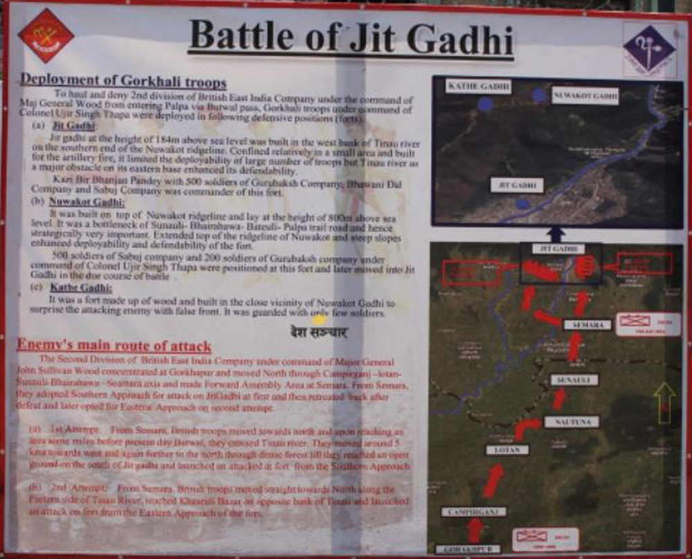अमरसिंह थापा ९साना० का नाति २० वर्षे उजिरसिंह थापा कर्णेल नियुक्त भएपछि उहाँकै नेतृत्वमा नेपालले अङ्ग्रेजसँग निर्णायक युद्ध लडेको थियो । कर्णेल थापाको नेतृत्वमा रहेको नेपाली सेनाले अङ्ग्रेज सेनामाथि विसं १८७२ वैशाख ७ गते विजय हासिल गरेको इतिहास छ । उपमहानगरपालिकाले बनाएको जितगढी गुरुयोजनामा अहिले नेपाली सेनाले सहकार्य गरिरहेको छ । “यो अत्यन्तै महत्वको स्थल हो, यसको संरक्षण र व्यस्थापनका लागि हामीले उपमहानगरपालिकासँग सहकार्य गरेका छौँ”, नेपाली सेनाको गरुडदल गण बुटवलका प्रमुख सेनानी रामकृष्ण श्रेष्ठले भन्नुभयो । (रासस)