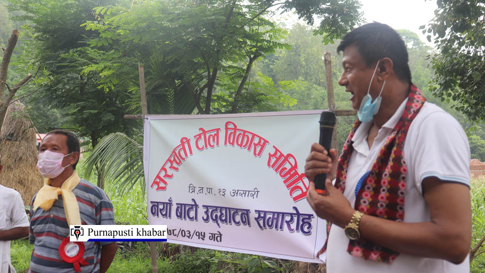 १३ नं. वडाध्यक्ष पशुपती चौधरीले सरस्वती टोलको आवश्यकता हेरेर सडक निर्माणको काम अगाडी बढाएको बताउनुभयो । यसको स्तरोन्नतीमा आगामी दिनमा काम गरिने उहाँले बताउनुभयो ।