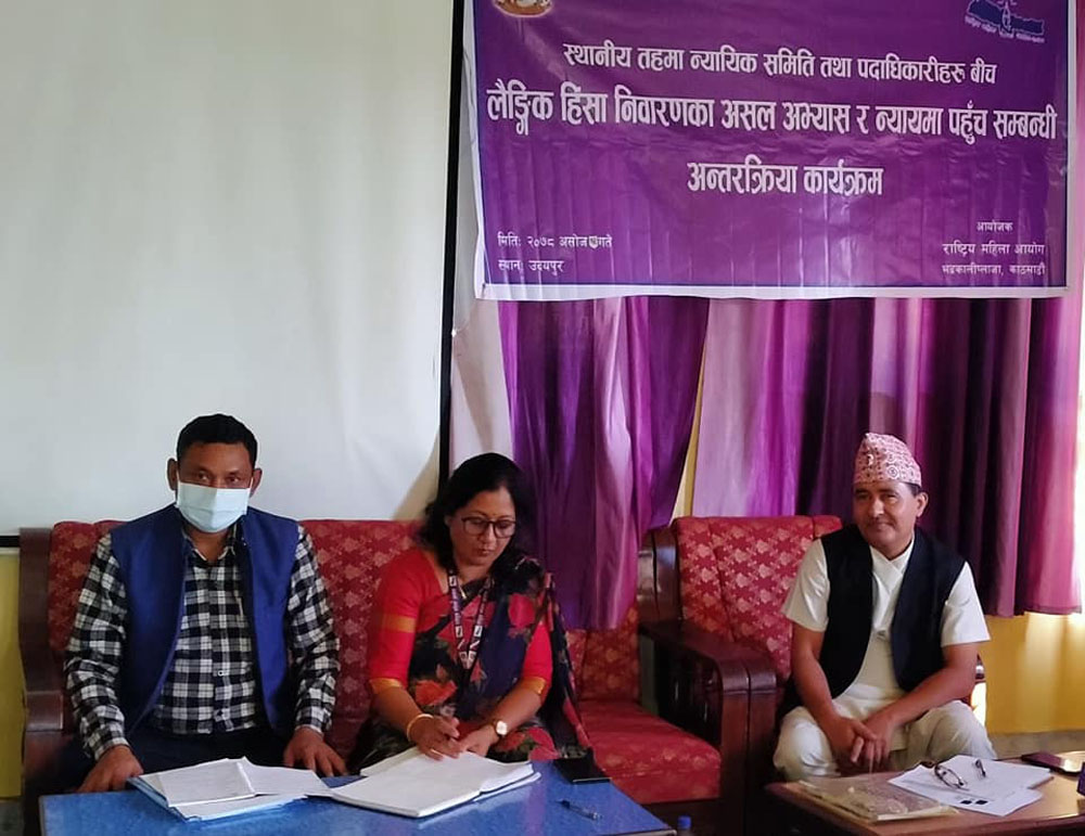 राष्ट्रिय महिला आयोगले गाईघाटमा आयोजना गरेको स्थानीय तहमा न्यायिक समिति तथा पदाधिकारी विच लैङ्गिक हिंसा निवारणका असल अभ्यास र न्यायमा पहुँच सम्बन्धि अन्तरक्रियामा सहभागिहरुले यस्तो गुनासो गरेका हुन् ।
