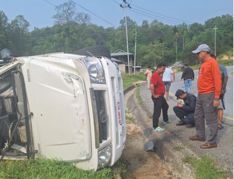उदयपुरमा मालपोत कार्यालयको जीप दुर्घटना हुँदा हाकिम सहित ४ जना घाइते