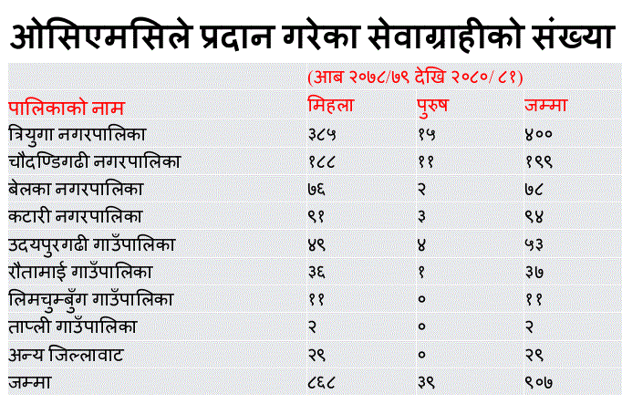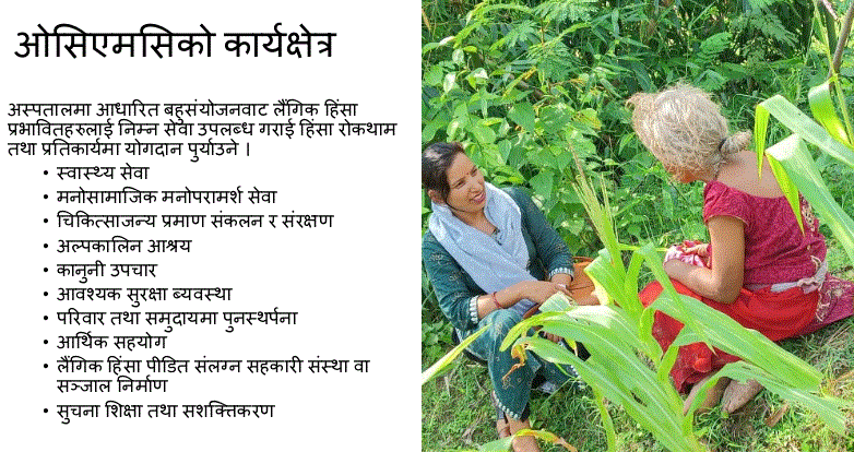 ओसिएमसी उदयपुरकी बरिष्ठ मनोपरामर्शदाता रन्जना ताजपुरियाले उदयपुरमा लैङ्गिक हिसाका घटनाहरु छरपस्टै रहेको जनाईन् । यदि ओसिएमसीले यस क्षेत्रमा काम गर्न नसक्ने अवस्थामा जिल्लामा यी घटनाहरु थप बिकारल बन्दै जाने ताजपुरियाले बताईन् । ताजपुरियाले ओसिएमसी नेपाल त्यस्ता घटना सँग सम्बन्धित व्यक्तिहरुको अभिभाव भैरहेका कारण हिंसामा परेका व्यक्तिहरुलाई सुरक्षा र व्यवस्थित गर्न सकिएको जनाईन् । ताजपुरियाका अनुसार स्वास्थ्य सेवा, मनोसामाजिक मनोपरामर्श सेवा, चिकित्साजन्य प्रमाण, संकलन र संरक्षण, अल्पकालिन आश्रय, कानुनी उपचार, आवश्यक सुरक्षा ब्यवस्था, परिवार तथा समुदायमा पुनस्थर्पना, आर्थिक सहयोग, लैंगिक हिंसा पीडित संलग्न सहकारी संस्था वा सञ्जाल निर्माण र सुचना शिक्षा तथा सशक्त्तिकरणको सेवाहरु ओसिएमसी मार्फत प्रदान गर्दै आएको छ ।