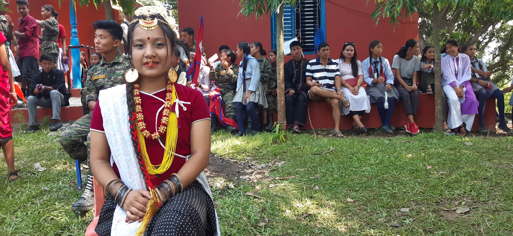 आफ्नो भेषभुषामा संविधान दिवस कार्यक्रममा सहभागि किशोरी