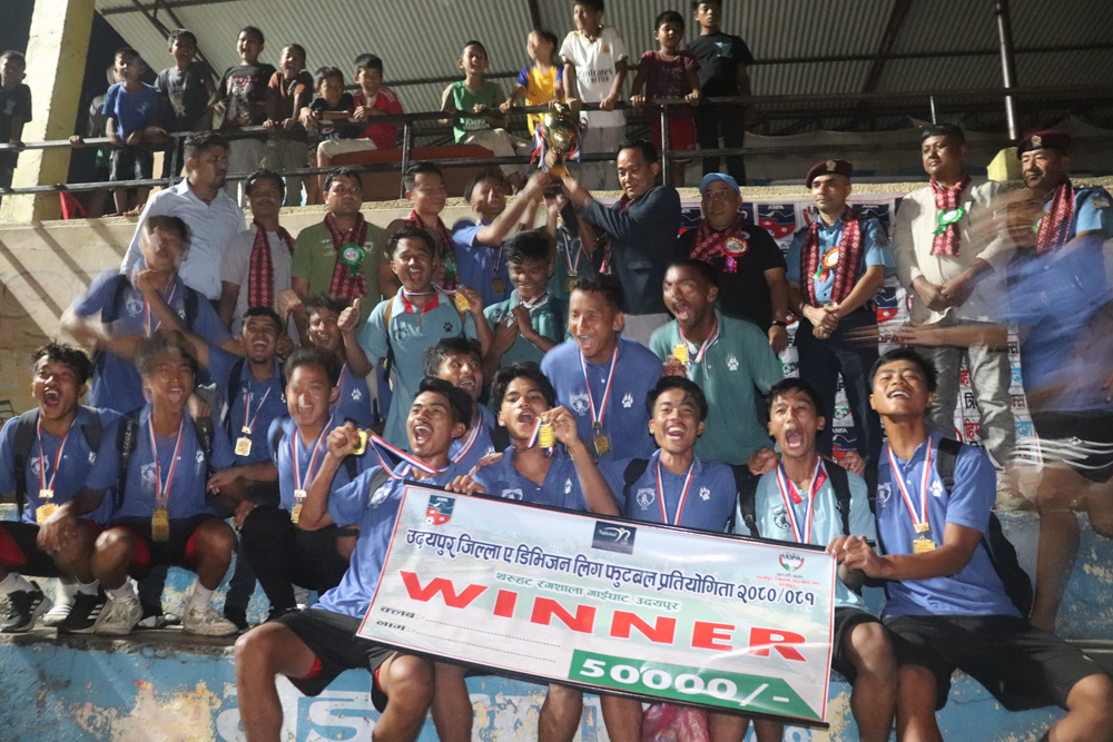 पूर्णपुष्टि, जेठ १६ । उदयपुर ए डिभिजन लिग फुटबल प्रतियोगिताको उपाधि गाईघाट फुटबल क्लबले जितेको छ । बुधबार भएको फाईनल खेलमा गाईघाट फुटबल क्लबले फ्युजन फुटबल क्लब बोक्सेलाई १–० गोल अन्तरले हराउँदै उपाधि हात पारेको हो ।