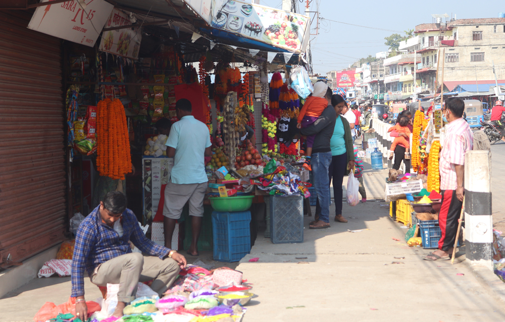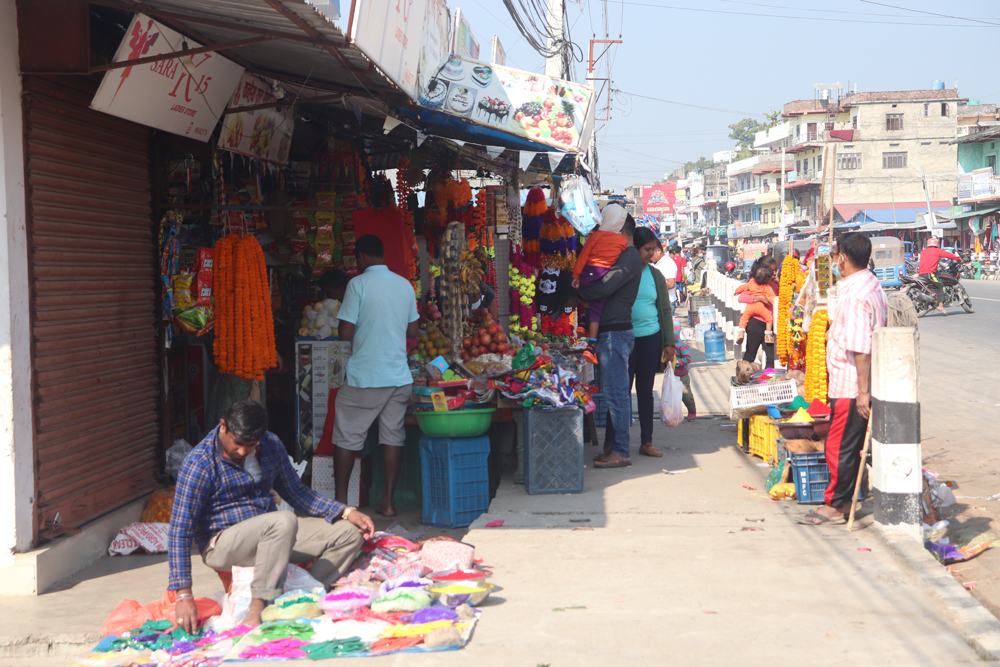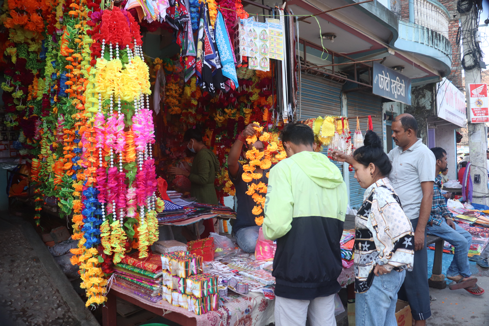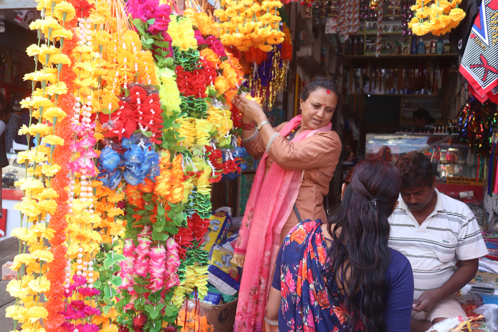 फुलहरु किनबेचको लागि प्रसस्त राखिएको छ । खाद्यन्न तथा लत्ता कपडा र जुत्ता चप्पल किन्नेहरु पनि बजारमा बढी मात्रामा देखिएको छ । २० गते पर्न गएको भाईटिका लागि छोरीचेलीहरु अहिले सामान किन्न बजारमा व्यस्त देखिन्छन् । उनिहरुले आफ्नो माईतीहरुका लागि बिभिन्न सरसामान, मिठो मिठो खानेकुरा, फलफुल रंगिन टिका लगाउने, कपडाहरु जस्ता कुराहरु किन्ने कार्य अहिले बजारमा देखिएको छ ।