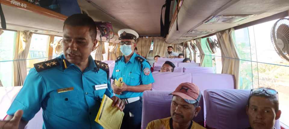 गाईघाटबाट काठमाण्डौँ चल्ने नाईट बसमा अनिवार्य दुई जना चालकको ट्राफिक प्रहरीद्धारा अनुगमन