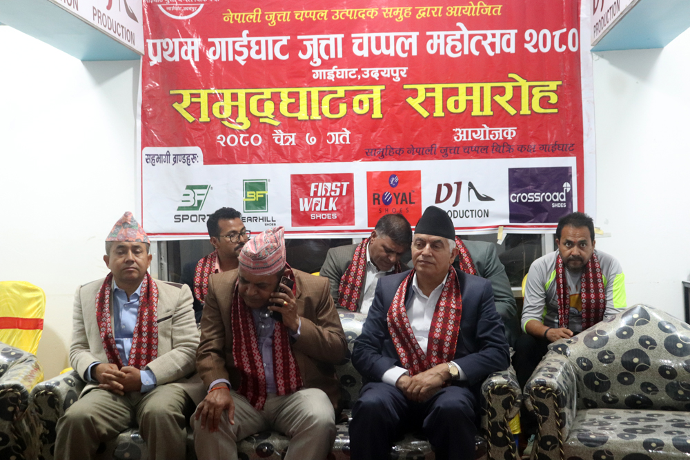 ‘स्वदेशी उत्पादनको प्रवद्र्धन हाम्रो अभियान’ भन्ने मुल नाराका साथ सामुहिक नेपाली जुत्ता चप्पल उद्योगीहरुले गाईघाट स्थित एक महिने जुत्ता चप्पल सुरु गरेको हो ।