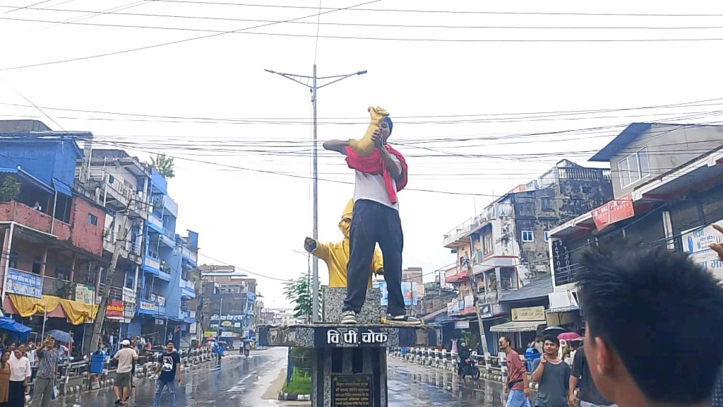पूर्णपुष्टि, भदौ २४ । सरकार विरुद्धको आन्दोलन चर्किएपछि जेन्जी प्रदर्शनकारीले उदयपुरको त्रियुगा नगरपालिकामा रहेको वि.पि. कोइरालाको शालिक तोडफोड गरेको छ ।