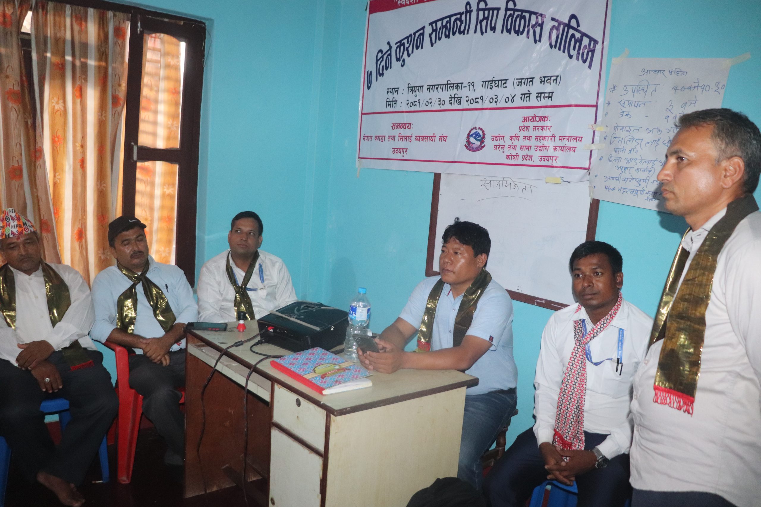 गाईघाटमा संञ्चालन भैरहेको ७ दिने कुशन सिलाई तालिम सम्पन्न भएको छ । प्रदेश सरकार उद्योग कृषि तथा सहकारी मन्त्रालय घरेलु तथा साना उद्योग कार्यालय उदयपुरको आयोजना र नेपाल कपडा तथा सिलाई व्यवसायी संघ उदयपुरको समन्वयमा संञ्चालन भएको तालिम मंगलबार समापन गरिएको हो ।