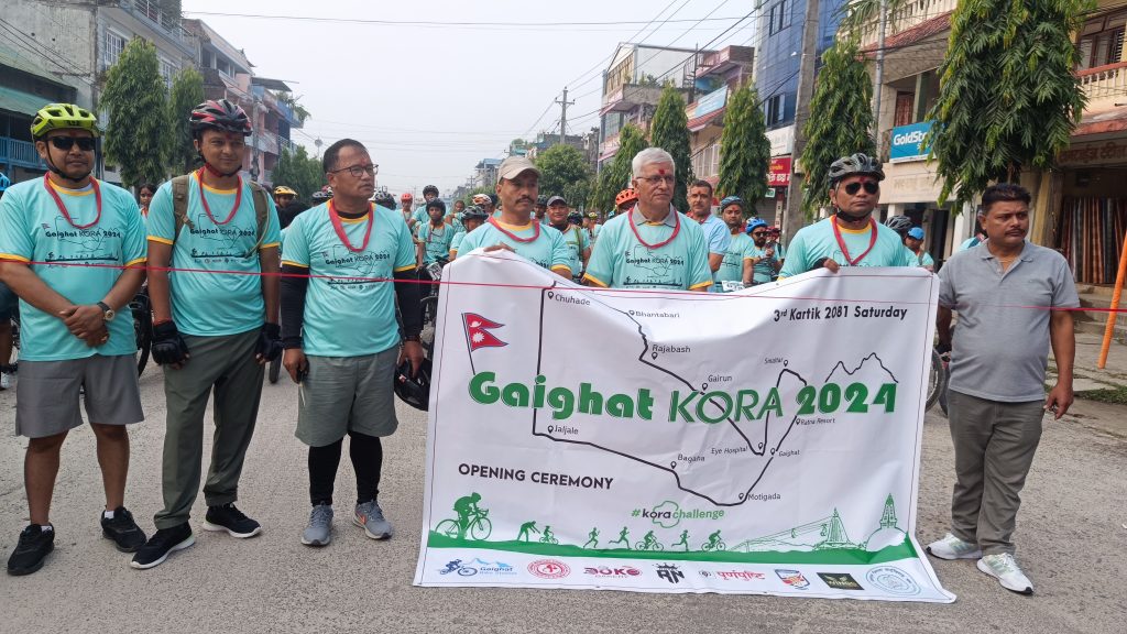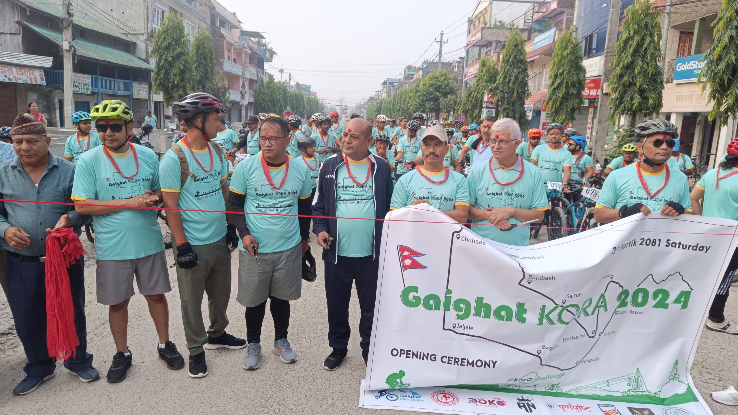उदयपुरमा गाईघाट कोरा च्यालेन्ज २०२४ सम्पन्न भएको छ । शनिवार गाईघाट पिपलचोक देखी सुरु भएको छैँठौ संस्करणको कोरा च्यालेन्ज ढिम्की रत्न रिसोर्टमा आएर सम्पन्न भएको हो । असोज १२ गते सनिवारका दिन गर्ने भनिएको उक्त च्यालेन्ज बर्षा र प्राविधिक समस्याले रोकिएको थियो । सोही कार्यक्रमलाई कार्तिक ३ गते शनिवार सम्पन्न गरिएको आयोजक जिल्ला साईकलिङ संघ उदयपुरले जनाएको छ ।
