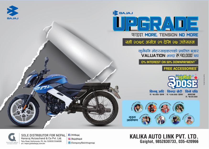 गाईघाटमा कालिका अटो लिंक बजाज सोरुमले यहि असोज २० देखि २५ गते सम्म बजाज माहामेलाको आयोजना गरिरहेको छ । यस मेलामा नेपालका चर्चित कलकारहरुले प्रस्तुती दिने आयोजकले जनाए । नेपालका लोकप्रिय कलकारहरु प्रकाश सपुत, निशान भट्राई, अस्मिता अधिकारी, रचना रिमाल लगायतका अन्य कलकारहरुले यस मेलामा प्रस्तुती दिने छन् ।