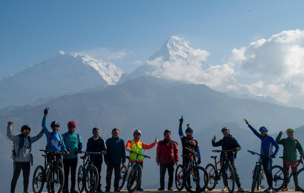 नयाँ वर्षको अवसरमा पोखरा साइकल सिटीका १४ जनाको टोली साइकल चढेर घोडेपानी पुगेका थिए । गुराँसको जङ्गल भित्र साइकल चढेर प्यारीबाराही ताल पुगेका सिटीका सहसचिव धर्मसिंह लामीछाने नेतृत्वको टोली पुनहिल घुमेर कास्कीको उल्लेरी हुँदै पोखरा फर्किएका छन् । पहाडको टाकुरामा रहेको घोडेपानी पुनहिल घुम्न साइकल चढेर जान सकिने लामीछानेले बताउनुभयो ।