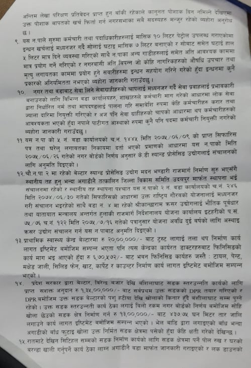 स्थानीय सरकार सञ्चालन ऐन र अन्य प्रचलित ऐन नियमभन्दा बाहिर काम गर्न नहुनेमा सचेत रहेको भन्दै नेकपा नगरले पालिकामाथि लगाएको आरोप जस्तो अनियमितता र अपारदर्शी नरहेको बताउनुभयो ।