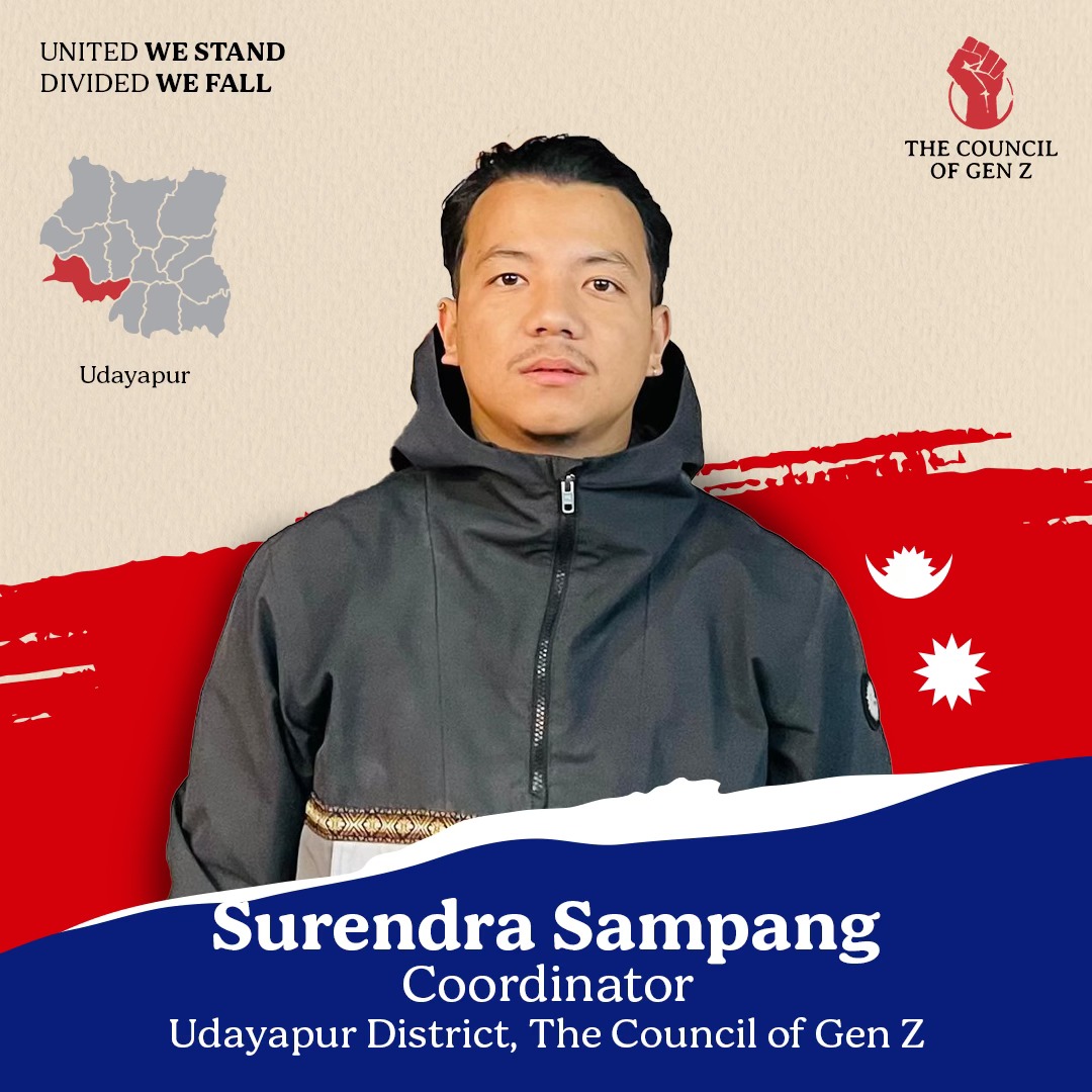 यतिवेला देशभर जेनजी नेतृत्व चयनको काम अघि बढीरहेको छ । प्रदेश सँगै देशभरकै जिल्लाहरुमा संयोजक तोक्ने क्रममा प्रदेश नं १ (कोशी) को पनि बिभिन्न जिल्लाहरुमा जेनजी संयोजक तोक्ने काम भैरहेको छ । यसै क्रममा उदयपुर जिल्लामा भने सुरेन्द्र साम्पाङ राईलाई जेनजी संयोजक बनाईएको छ । राई जेनजी युवा नेतृत्वका लागि अब्बल ब्यक्ति पनि हुन् ।