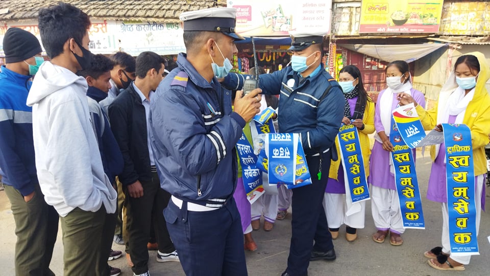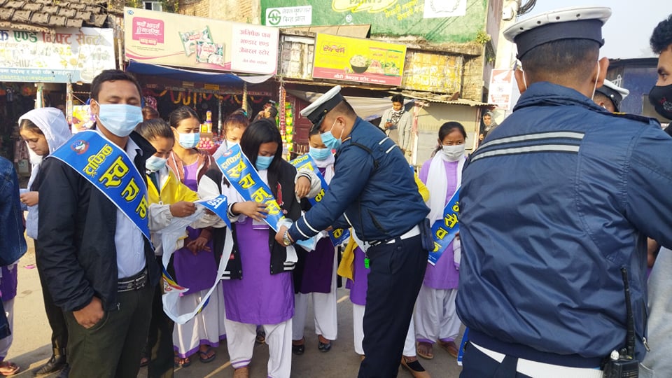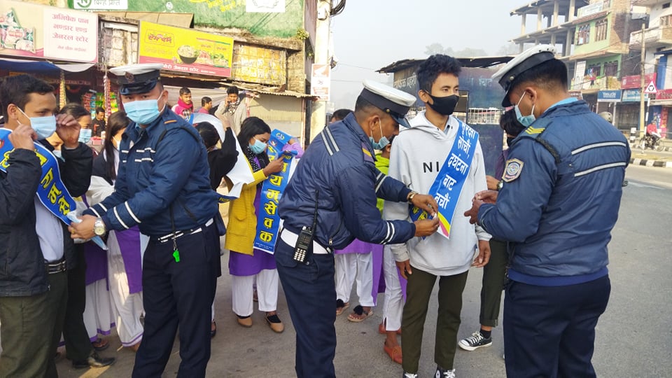 ट्राफिक सप्ताहको दोस्रो दिन उदयपुरमा विद्यार्थी संयमसेवक सहित पर्चा पम्पप्लेट वितरण तथा सचेतना