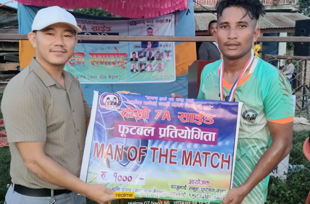 बोक्सेमा जारी सेभेन ए साईड फुटवल प्रतियोगिताको तेस्रो दिन ब्रोदर्स फुटवल क्लव बिजयी बनेको छ । डेडी फुटसललाई ८÷० ले हराउँदै ब्रोदर्स बिजयी बनेको हो । ब्रोदर्सको तर्फबाट दिवस श्रेष्ठले ५ गोल, सुदिप श्रेष्ठले २ गोल र युवराज थापाले १ गोल गरी जम्मा ८ गोल हानेका थिए । यता डेडी फुटसल भने गोलबाट बन्चित बने । खेलमा दिवस श्रेष्ठ म्यान अफ म्याच घोषित बने । उनले नगद रु १ हजार प्राप्त गरे । श्रेष्ठलाई नेशनल लाईफ इन्सोरेन्स गाईघाट शाखा प्रमुख प्रेम कुमार राईले पुरस्कार नगद प्रदान गरेका थिए ।