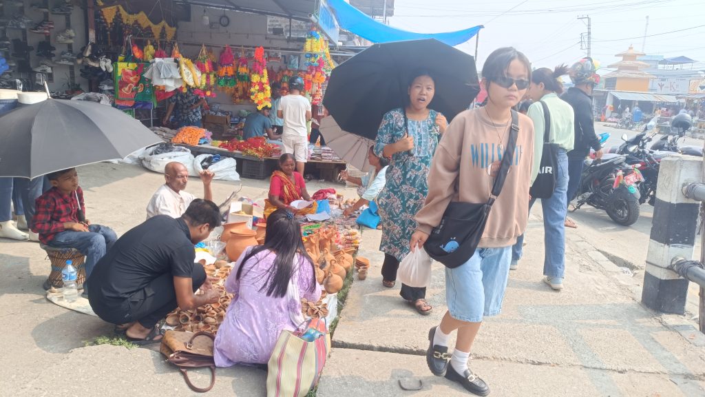 बिषेशगरी प्लाष्टिकको माला लगायत तिहारको सामाग्रीहरुको किनमेल बढी देखिन्छ । त्यस पश्चात खाद्यन्न, तरल पदार्थ, लत्ता कपडा, उपहार जस्ता कुराहरु पनि किनमेल भैरहेको छ । दशैँमा भन्दा पनि तिहारमा यो पटक गाईघाटमा भिँडभाँड देखिएको छ । बिगतमा कोरोनाले थलिएर संकट ग्रस्त भएको चाँडबाँड फेरी पुरानै अवस्थामा फर्किदैँछ । तिहारको दोस्रो दिन बजारमा भिँडभाँडले सिमा नाघेको छ । सवारी साधनहरुको आवत जावत र यात्रुको घुँईचो बढेको अवस्था छ । नेपालमा मनाईने ठुला चाँडहरु मध्ये तिहार पनि एक हो । दशैँ लगत्तै मनाईने यो पर्वमा झिलिमिलि र फुलमालाको बढी प्रयोग हुन्छ । माईतिहरुलाई खुसि बनाउन चेलीहरु यो बेला किनमेलको दौडधुपमा देखिन्छ । तिहार १४ गतेबाट नेपालीहरुको घर आगनमा आएको छ । बुधबार काग तिहार मनाएर बिहिबार कुकुर तिहार सँगै लक्ष्मी पुजा गरिने छ । शुक्रबार औँसी पर्छ भने शनिवार गाई र गोरु तिहार मनाएर आईतबार भाई टिका मनाईने छ ।