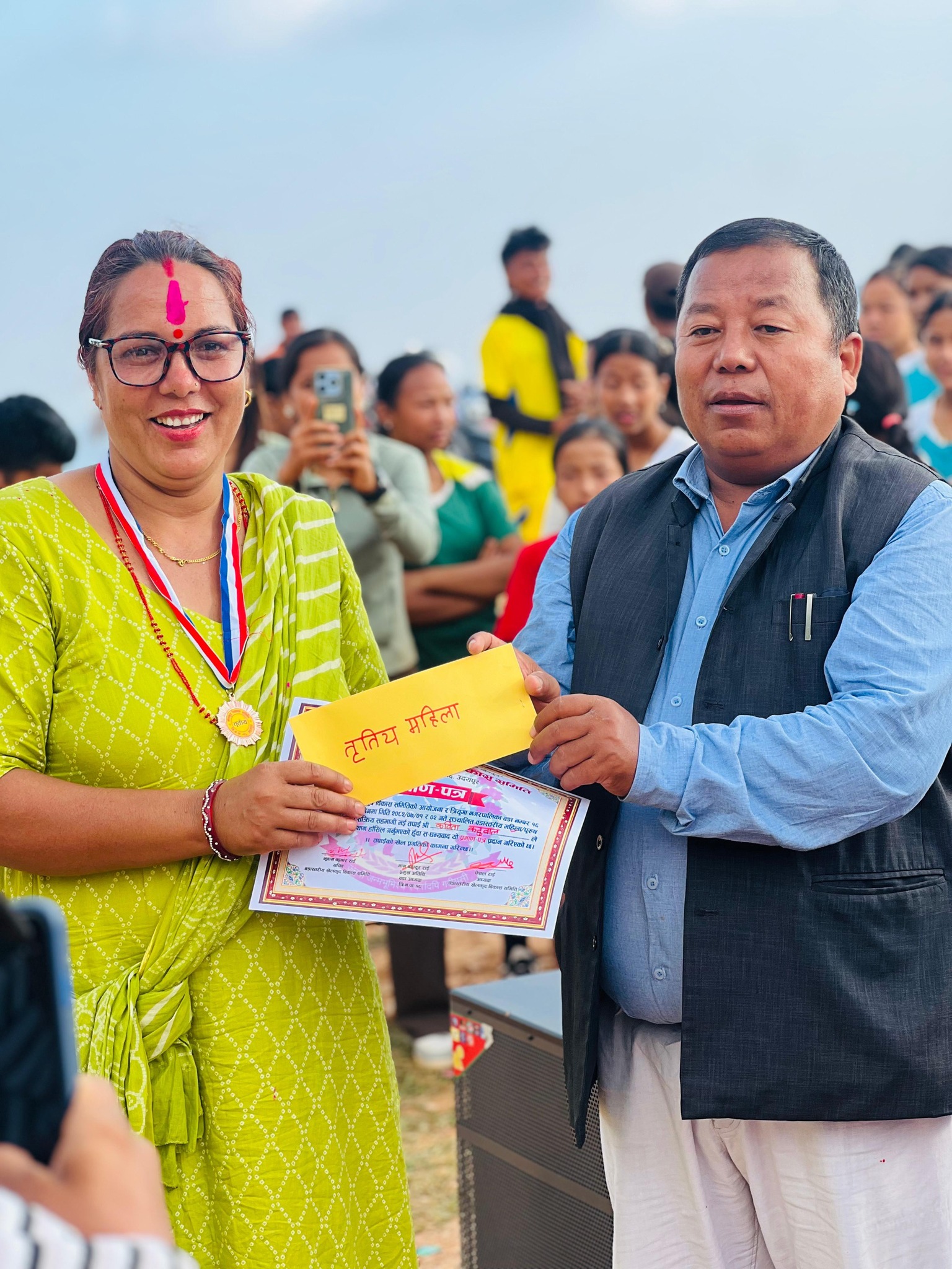 राईले खेलमा विजय हासिल गर्ने टिमहरुलाई बधाई र कार्यक्रमको आयोजना तथा संयोजन गर्ने वडा स्तरीय युवा तथा खेलकुद विकास समितिलाई धन्यवाद व्यक्त गरे । कार्यक्रममा वडा सदस्य घमान सिंह राई, कर्मचारी मिलन राई, वडा सचिव महेश खनाल लगायत खेलाडी, दर्शक खेलप्रेमी र स्थानीयहरुको बिषेश उपस्थिति रहेको थियो । खेल अबधीभर कार्यक्रम संञ्चाल वडा युवा तथा खेलकुद विकास समितिका सचिव भुवन राईले गरेका थिए ।