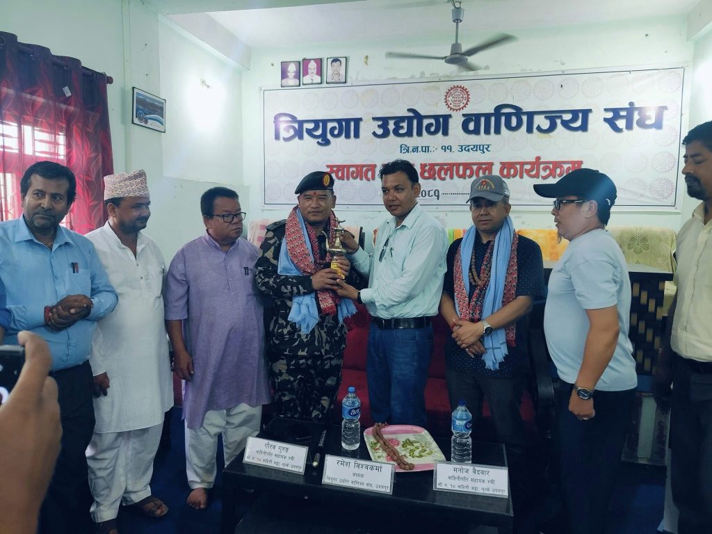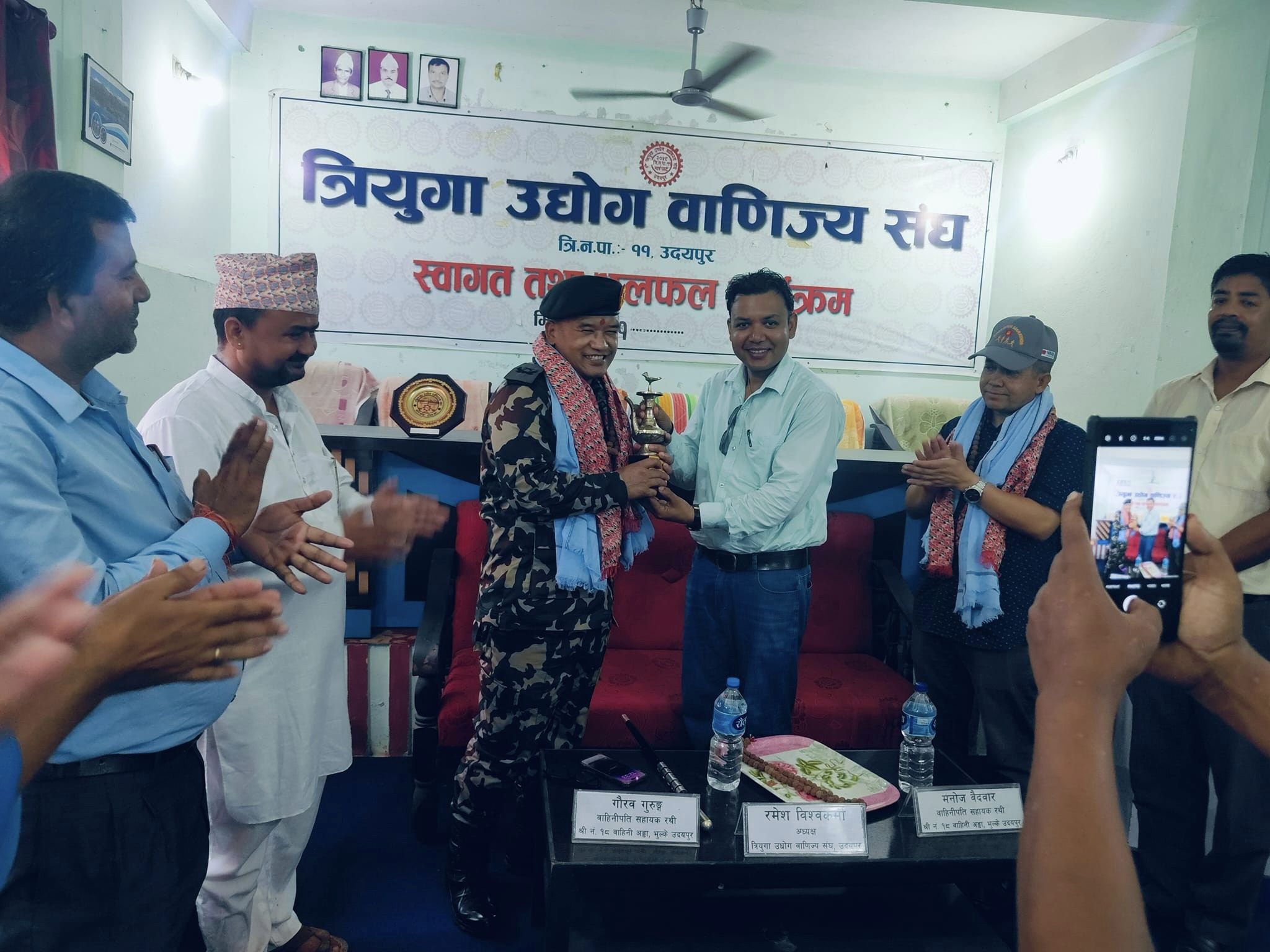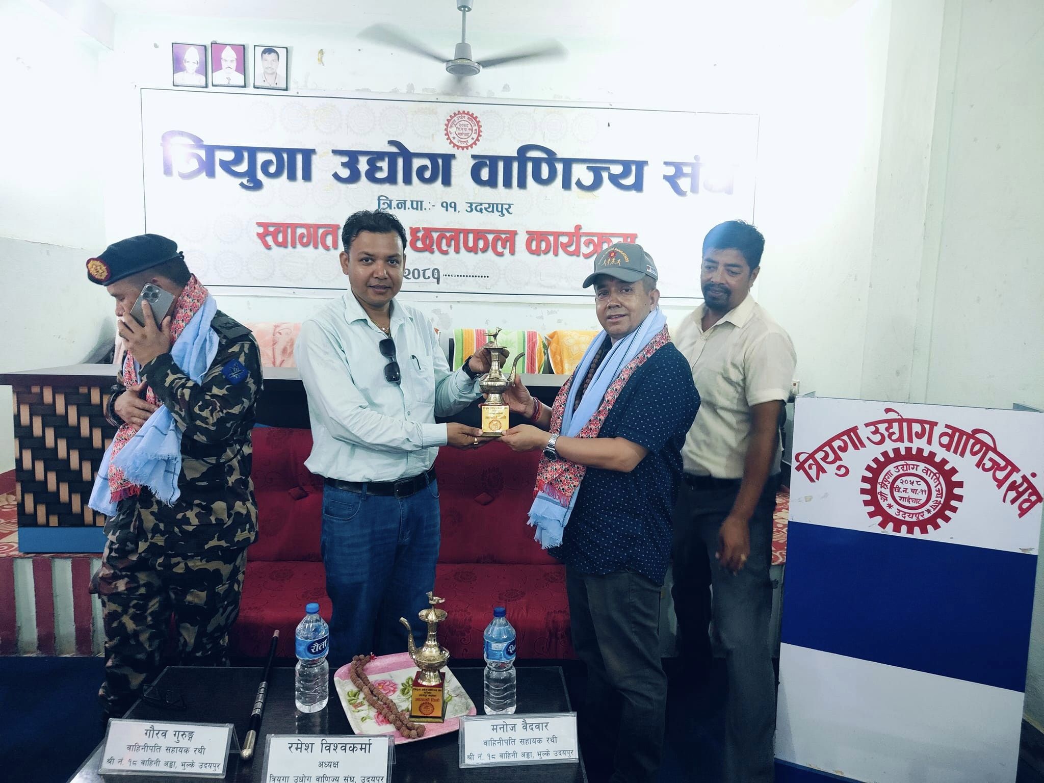 त्रियुगा उद्योग बाणिज्य संघ गाईघाटले १८ नं वाहिनि भुल्केको बाहिनिपति तथा सहायक रथि मनोज बैदवारलाई बिदाई गरेको छ । बैदवारको राष्ट्रपति कार्यालय भवन काठमाण्डौँमा सरुवा भएसँगै विद्याई गरिएको हो । बुधबार संघको भवनमा रमेश रसाईलीको अध्यक्षतामा बैदवारको भव्य विदाई गरियो । संघका पदाधिकारी तथा व्यवसायीहरुको उपस्थितिमा बैदवारको विदाई भएको हो । बैदवार २०८० साल साउन २६ गते १८ नं वाहिनि भुल्केमा जिम्मेवार सम्हाल्न आईपुगेका थिए ।