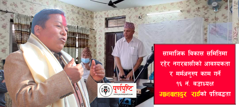 त्रियुगा नगरपालिकाको सामाजिक विकास समिति संयोजकको जिम्मेवारी पुनः वडा नं. १६ का वडाध्यक्ष मानबहादुर राईले सम्हालेका छन् । दुईदिन अघिदेखि अध्यक्ष राईले सो जिम्मेवारी सम्हालेका हुन् ।