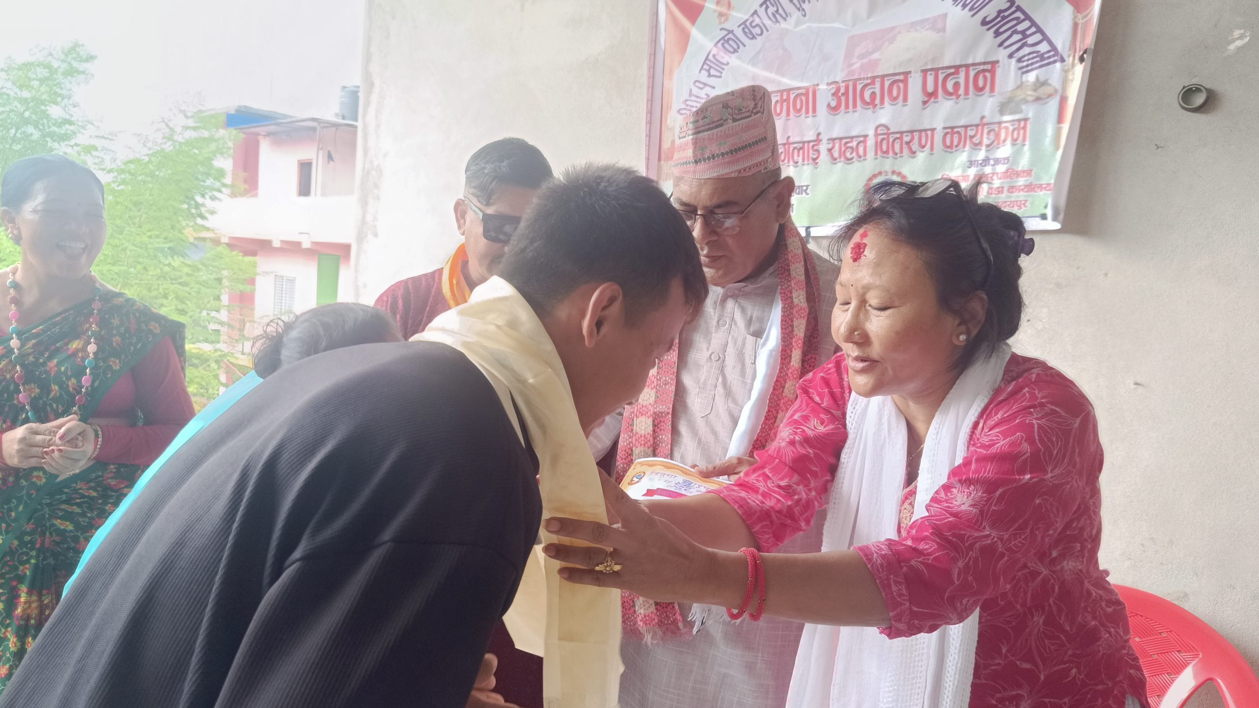 वडाअध्यक्ष किरण पाण्डेका अनुसार वडाका ५० घर परिवारलाई २५ किलोको एक बोरा चामल, एक पोका तेल, एक पोका नुन र दाल प्रदान गरिएको छ। पाण्डेले राहत वितरण गर्दै भने, चाडबाडको मुखमा गरिब, असहाय र अशक्त व्यक्तिहरूलाई यो राहत वितरण गरिएको हो । यस राहतले उनीहरूको चुल्होमा आगो बल्ने र चाडबाड मनाउन सहज हुने विश्वास गरिएको छ ।