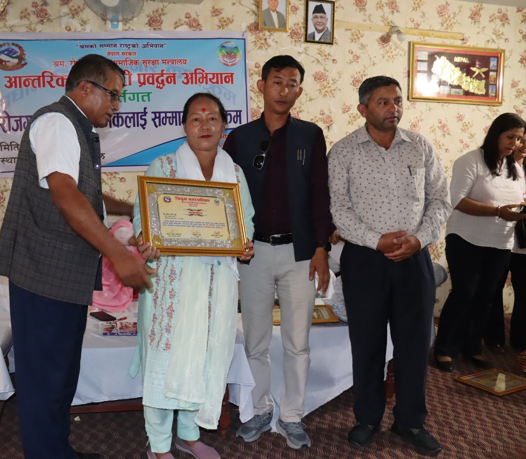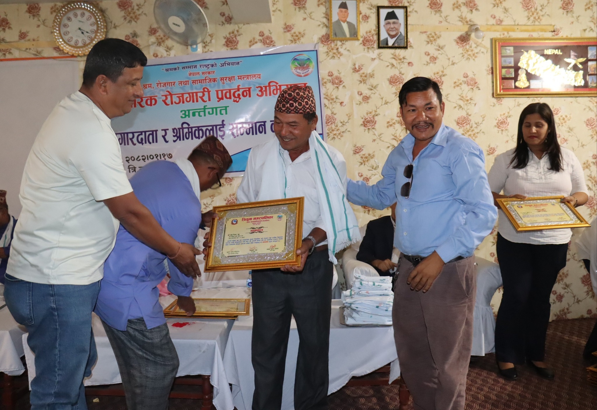 त्रियुगा नगरपालिका रोजगार सेवा केन्द्रले उत्कृष्ट रोजगारदाता तथा श्रमिकहरुलाई सम्मान गरेको छ । १३६ औँ अन्तराष्ट्रिय श्रमिक दिवसको अवसरमा त्रियुगाको २४ जना रोजगारदाता र २३ जना श्रमीक गरी जम्मा ४७ जनालाई बुधबार सम्मान गरेको हो । त्रियुगा नगरपालिकाको सभा हलमा प्रधानमन्त्री रोजगार कार्यक्रम तथा आन्तरिक रोजगार प्रवद्र्धन अभियान अन्तर्गत श्रम तथा रोजगारी क्षेत्रको आर्थिक विकासमा महत्त्वपूर्ण योगदान पुर्याउने रोजगारदाता तथा श्रमिकहरुको उत्कृष्ट मुल्याङ्कन गर्दै सम्मान गरिएको हो ।