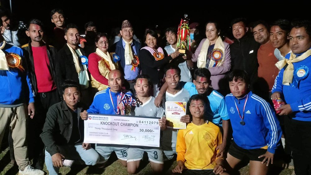 उत्कृष्ट डिफेन्डर ब्रदर्स ग्रुपकै प्रबिण श्रेष्ठले हात पारे। फाईनल खेल प्रदेश न १ का उपसभामुख सृजना दनुवारको प्रमुख आतिथ्य र त्रियुगा नगरपालिकाका उपप्रमुख महेस्वरी राईको बिशेष आतिथ्यमा सम्पन्न भएको थियो। फाईनल खेलको उद्घाटन कार्यक्रमलाई सम्बोधन गर्दै उपसभामुख दनुवारले स्थानिय स्तरमा आयोजना हुने खेलहरुले राम्रा खेलाडी उत्पादन हुने, अबसर पाएमा प्रदेशकै नाम उच्च राख्ने बताउनु भयो । त्यसै गरि वडास्तरमा फुटबल प्रतियोगिता आयोजना गरेर स्थानिय क्लबहरुले नगर क्षेत्रको खेलकुद बिकासमा ठूलो योगदान गरेको त्रियुगा नगर उपप्रमुख महेस्वरी राईले बताउनु भयो ।
