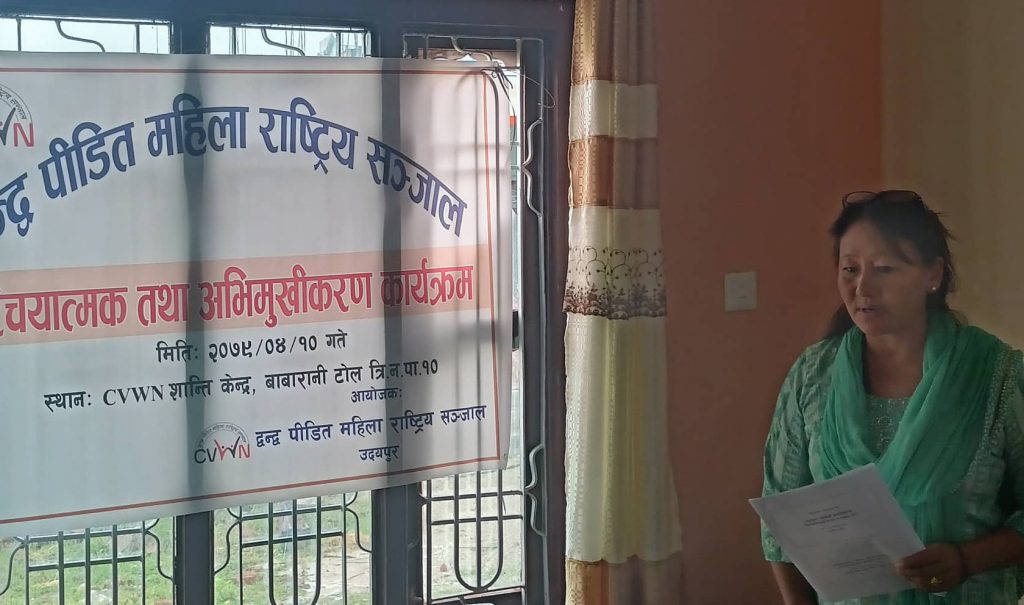 कार्यक्रममा द्धन्द्धपीडितका समस्यामा केन्द्रित रही परियोजना जिल्लाभरी संचालन गरिने कार्यक्रम संयोजक दुर्गा कार्कीले बताईन् । द्धन्द्ध पीडितलाई मनोपरामर्श सेवासमेत सञ्चालन गर्दै आएको संजालले द्धन्द्धपीडितको तथ्यांक संकलन, समाजमा स्थापित गर्ने गरी मेलमिलाप कार्यक्रम, वहस, पैरवी, कानुनी सहायता र पहुँच कार्यक्रम सञ्चालन गरिएको उनले बताईन् ।