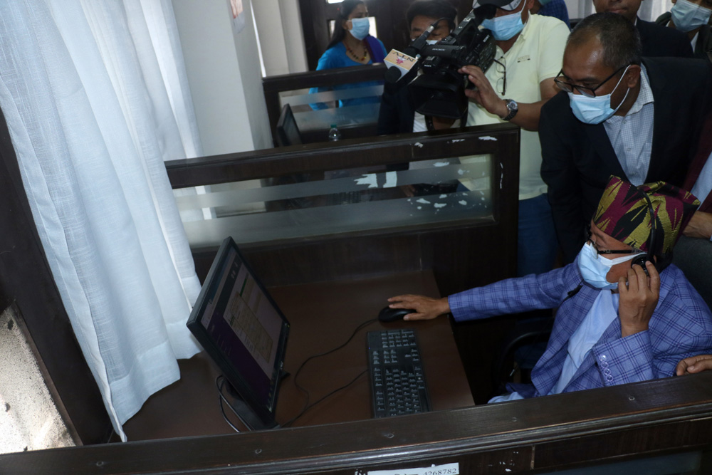 निःशुल्क टोल फ्रि नम्बर ११०२ रहेको कल सेन्टर शुभारम्भ गर्दै प्रमुख निर्वाचन आयुक्त दिनेशकुमार थपलियाले टेलिफोनमार्फत सेवाग्राहीले सोधेका जिज्ञासालाई सम्बोधन गर्नुभयोे ।