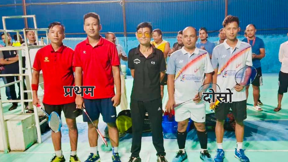 ६९ ओैं प्रहरी दिवसकाे अबसरमा जिल्ला प्रहरी कार्यालय उदयपुरले आयाेजना गरेकाे ब्याडमिन्टन प्रतियाेगिताकाे फाईनल खेलमा ए डिभिजनतर्फ माेति राई र हिमाल श्रेष्ठकाे जाेडि बिजेता बनेकाे छ ।