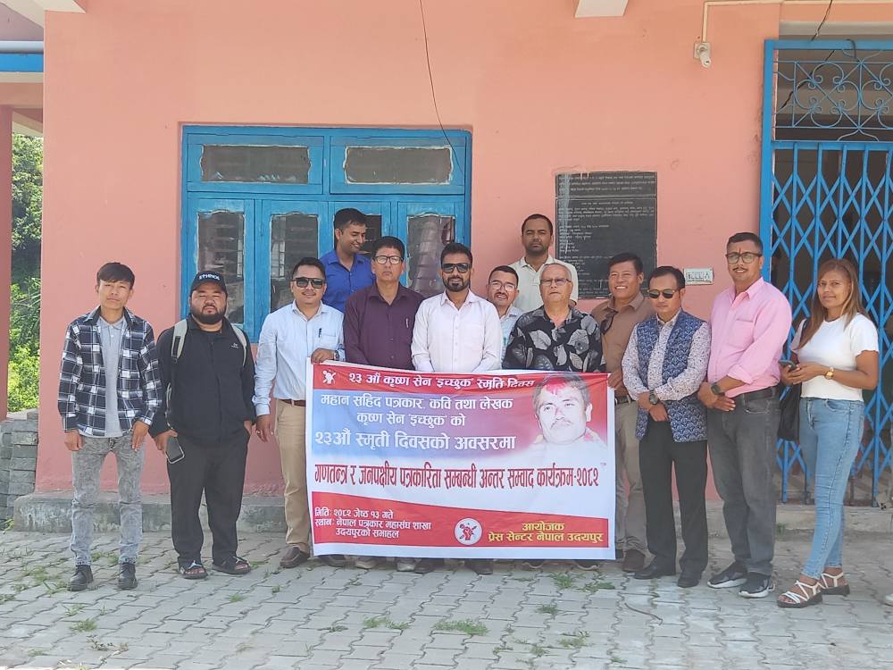 उदयपुरमा २३ औँ कृष्ण सेन इच्छुकको स्मृति दिवस मनाईएको छ । मंगलबार नेपाल पत्रकार महासंघको सभाहलमा गणतन्त्र र जनपक्षीय पत्रकारिता सम्बन्धी अन्तर सम्वाद सहित स्मृति दिवस मनाईएको हो । बरिष्ठ पत्रकार कौशल चेम्जोङको प्रमुख आथित्यमा भएको अन्तर सम्वादमा कृष्ण सेन जनपक्षिय र गणतन्त्रवादी पत्रकारको रुपमा रहेको स्मरण गरिएको छ ।