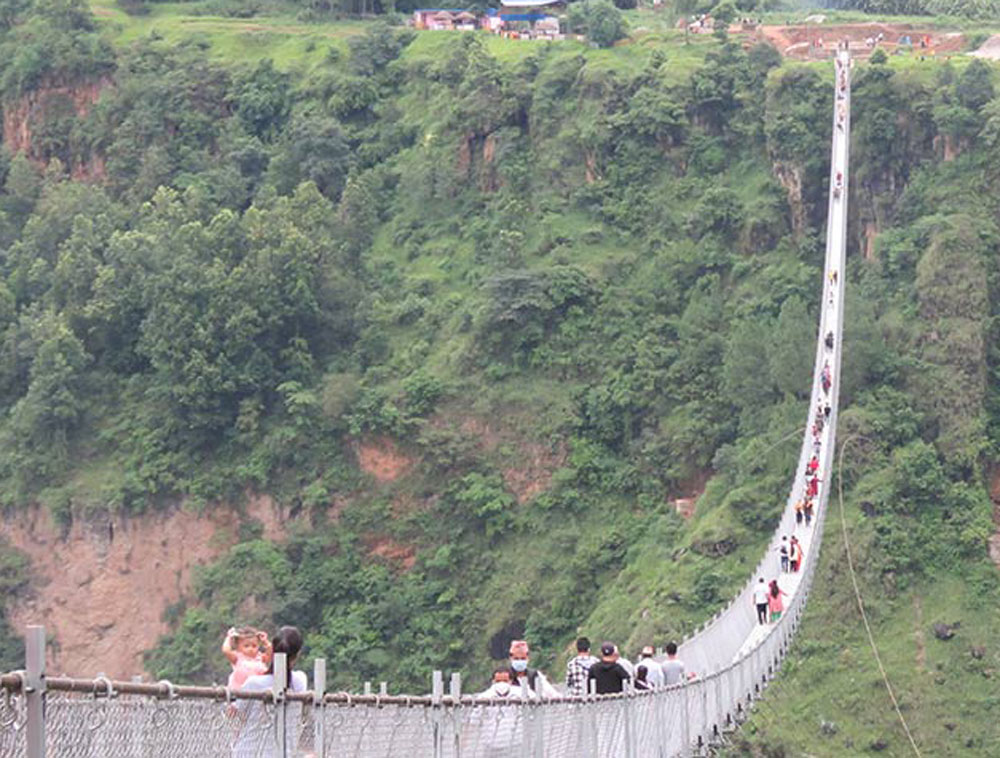 निर्माण सम्पन्न भएपनि कोरोनाका कारण तत्काल संञ्चालनमा आउन नसकेको विश्वकै लामो भनिएको झोलुङगे पुल शुक्रबार बाट संञ्चालन भएको छ ।नेपालमा बनेको बाग्लुङ र पर्वत जोड्नो सो पुललाई बिश्वकै लामो पुलको रुपमा अनुमान गरिएको छ ।