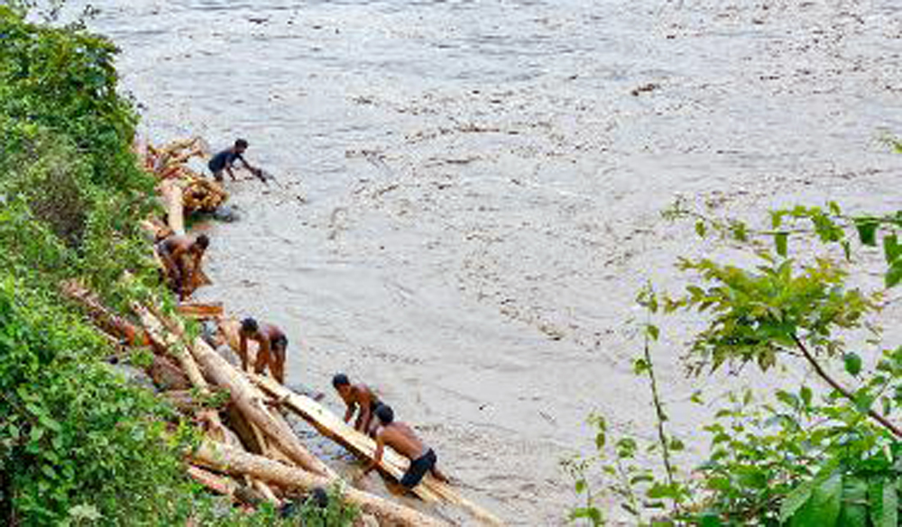 पूर्णपुष्टि, असार १७ । उदयपुरको गाईघाट बजार नजिकैको बरुवा खोलामा वर्षायाममा आउने बाढीसँगै बगेर आएका दाउरा र काठ संकलन गर्न स्थानीयहरू जोखिम मोल्न बाध्य भएका छन्।