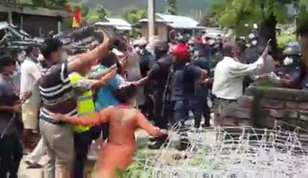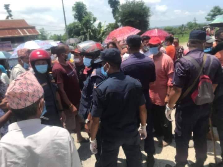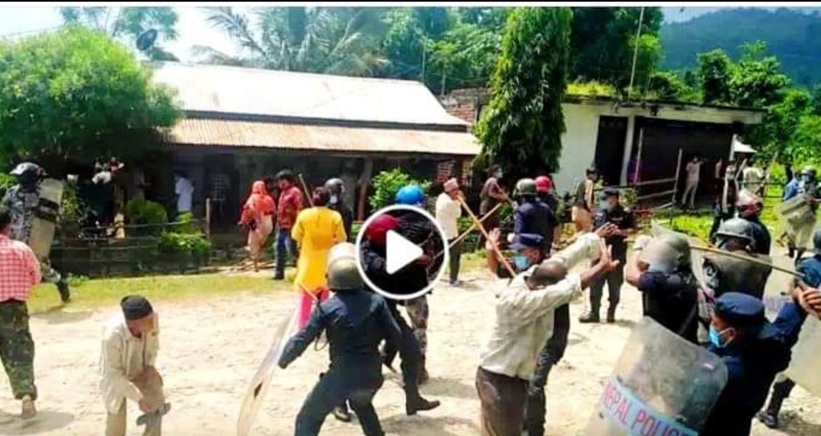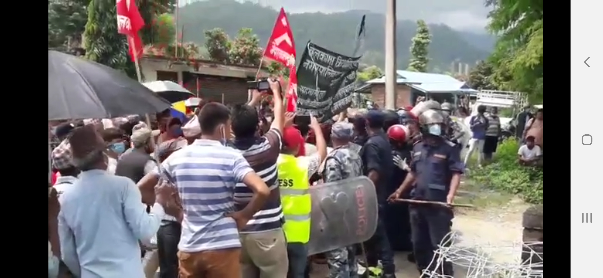 कालाे झण्डा प्रदर्शन गर्दै नगरपालिका धर्नाका लागि अघि बढेकाे भिडलाई राेक्न खाेज्दा प्रहरी र प्रदर्शनकारीबिच झडप भएकाे हाे ।