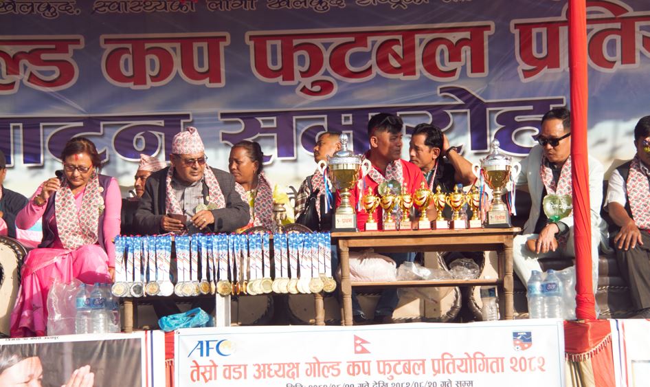 सुनिल राई÷गाईघाट, पूर्णपुष्टि, मंसिर ११ । त्रियुगा नगरपालिका वडा नं. १० बोक्सेमा आजदेखी तेस्रो वडा अध्यक्ष गोल्डकप फुटबल प्रतियोगिता सुरु भएको छ । बोक्सेस्थित गंगा खेल मैदानमा भएको उद्घाटन खेलमा कोशी प्रदेश प्रहरी रानी बिराटनगरले 11 स्टार फुटबल क्लब बोक्सेलाई पेनाल्टि सुटआउटमा ४–१ गोलले हराएको हो ।