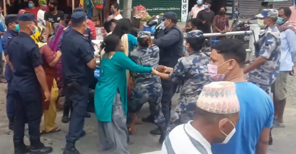 पूर्णपुष्टि, जेठ ६ । उदयपुरकाे गाईघाटमा सडक किनारमा तरकारी विक्रि गर्न बसेकाहरुलाई आज विहान भाैतिकदुरी कायम गर्न लगाउदा प्रहरीमाथि हातपात भएकाे छ । गाईघाटकाे विपि चाैक आसपासमा विहान ढकीमा तरकारी राख्नेहरुकाे दुरी नजिक हुनुका साथै मानिसकाे भिड बढेकाे थियाे । त्यसलाई बजारमा खटिएका नेपाल प्रहरी र सशस्त्र प्रहरीले भिड हटाई ब्यापारीहरुलाई भाैतिक दुरीमा राख्न खाेज्दा प्रहरिसंग विवाद भयाे । प्रत्यक्षदर्शीहरुका अनुसार विवाद मात्र भएन प्रहरीमाथि हातपात भयाे । सम्झाउन खाेज्दा उल्टै प्रहरिमाथि आईलागेकाे नगर प्रहरीले जनाईकाे छ । विवाद र हाेहल्लाले भिडभाड झनै बढेपछि प्रहरिले संयमता अपनाई उनिहरुलाई सम्झाई बुझाई छाडेकाे जनाईएकाे छ । जिल्लामा काेराेना संक्रमण समुदायस्तरमै फैलिसकेकाे छ । संक्रमणकाे उच्च जाेखिममा भाैतिक दुरि कायम गर्न जरुरि छ । लापरवाहि गर्नेलाई कारवाहि गर्न जरुरि भईसकेकाे बुद्धिजिविहरुकाे भनाई छ ।