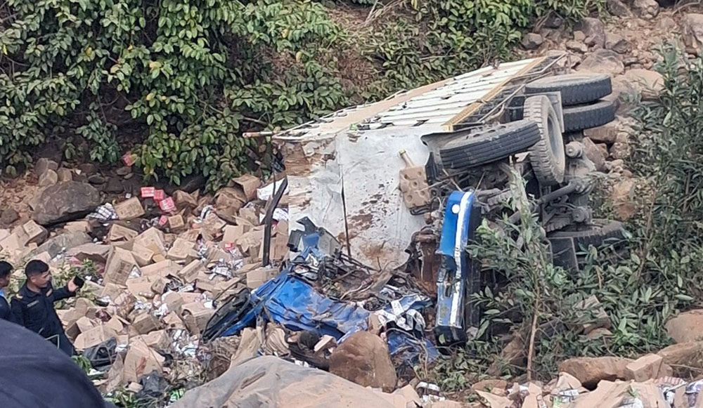 मदन भण्डारी राजमार्गको अधेँरीमा मालबाहक ट्रक दुर्घटना, दुईको मृत्यु