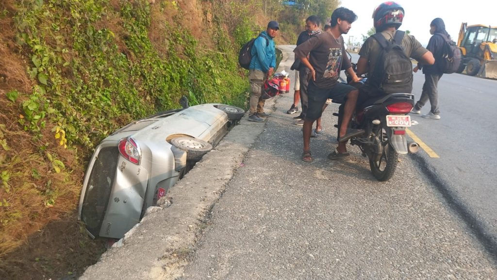 सडक किनारको नालीमा गाडी पसेर चेप्टिएको अवस्था छ । गाडीमा एकमात्र चालक रुपन्देहीको बुटवल नगरपालिका ११ का ३६ वर्षीय विष्णु घिमिरे रहेको र उनको अवस्था सामान्य रहेको छ । आफै अनियन्त्रित भई गाडी दुर्घटना भएको चालक घिमिरेको भनाइ छ । गाडीको बढीमा क्षति पुगेको छ।