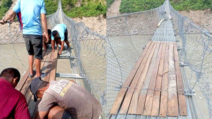 मर्मतपछि खोटाङ र उदयपुर जोड्ने झोलुङ्गे पुल सञ्चालनमा