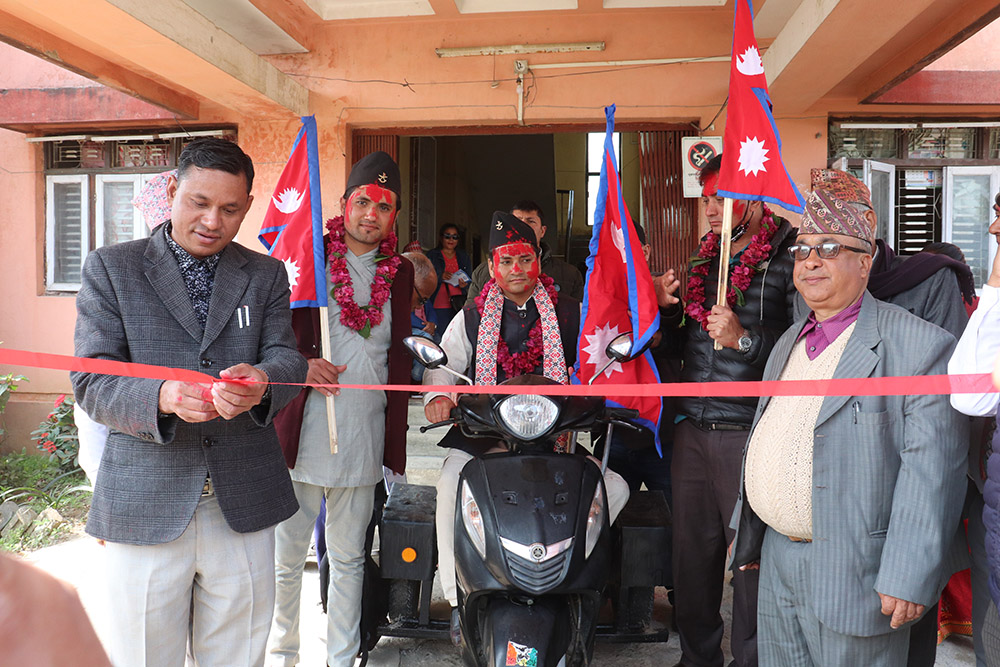 यात्रको उद्घाटन तथा विदाई जिल्ला समन्वय समितिका प्रमुख खड्ग परियारले गर्नुभयो । विदाई कार्यक्रममा वोल्दै परियारले अपाङता भएका व्यक्तिहरु शारिरिक रुपमा अपाङगता भएपनि मानसिक र इच्छा शक्तिको रुपमा अपाङगता नहुने बताउनुभयो । आज धेरै त्यस्ता सपाङग व्यक्तिहरुलाई पछि पार्दै अपाङगता भएको व्यक्तिहरुले नसोचेको काम गरी विश्वलाई चकित बनाउने सामाजिक आर्थिक, विकास लागएतको काममा ठुलो योगदान पुराईरहेको बताउनुभयो ।