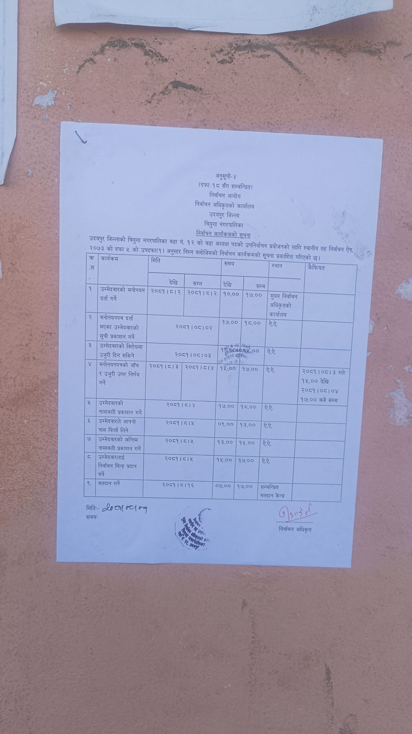 यस्तो छ त्रियुगा १२ उपनिर्वाचन कार्यक्रमको तालिका