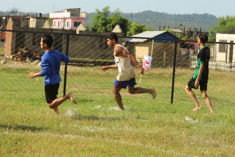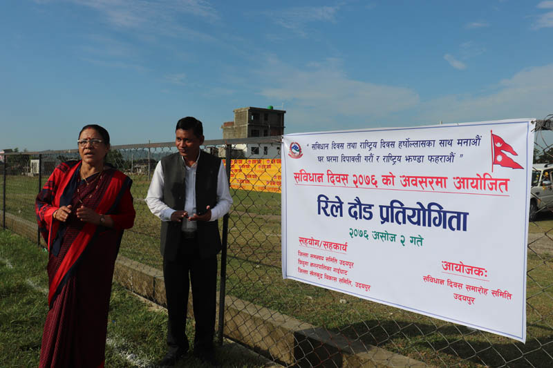संविधान दिवसको अवसरमा रिले दौड सम्पन्न भएको छ । विभिन्न कार्यक्रम गरी दिवसलाई भब्यताका साथ मनाउने क्रममा पहिलो दिन चार सय मिटरको रिले दौड सम्पन्न भएको हो ।
