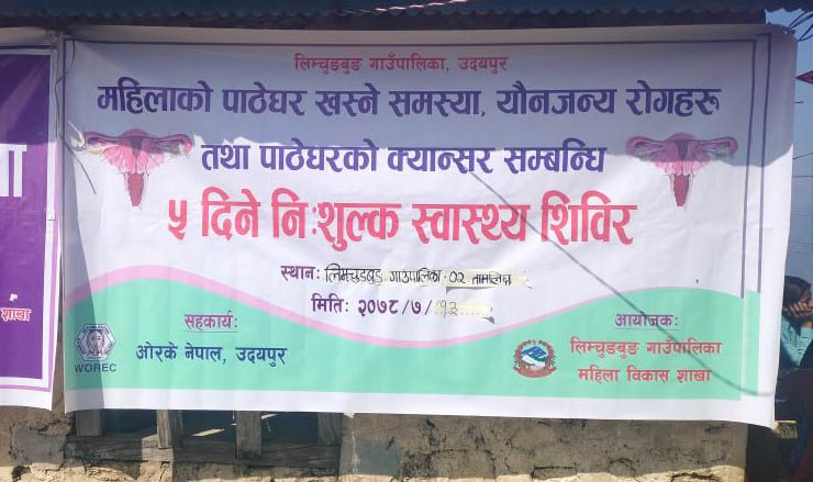 लिम्चुङबुङ गाउँपालिका महिला विकास शाखाको आयोजना तथा ओरेक उदयपुरको सहकार्य रहेको शिविरमा जिल्ला अस्पतालका स्टाफनर्श छवित्रा राई, पालिकाका चिकित्सक तथा स्वास्थ्यकर्मीहरु सेवामा खटिएका थिए ।