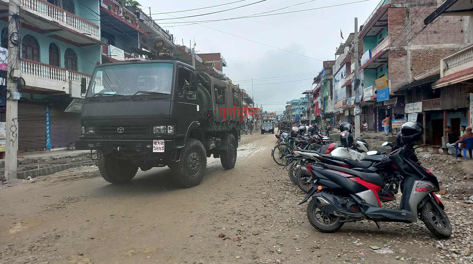 गएराती १० बजेदेखि नेपाली सेना शान्ति सुरक्षाका लागि सडकमा खटिएका छन् । गाईघाट बजार र जिल्लाको सबै क्षेत्रमा सेनाको पैदल तथा सवारीसाधनबाट गस्ती भइरहेको छ ।