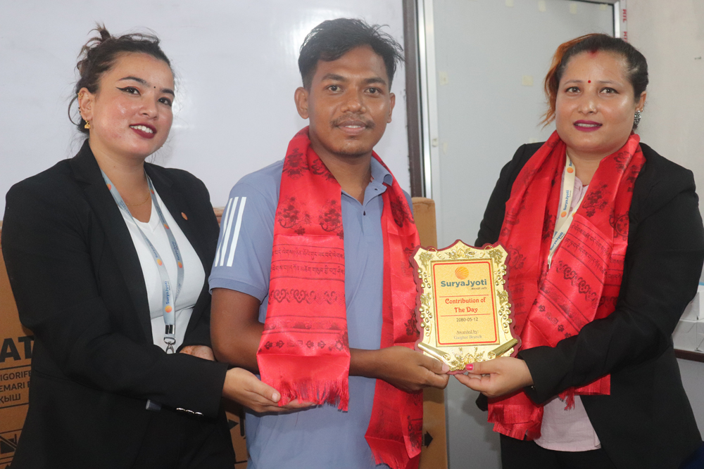 मंगलबार एक कार्यक्रमकाबीच कार्यालय परिसरमा खनाल र दनुवारलाई तारर्गेट पुरा गरी सफल एजेन्सिको रुपमा हैसियत बनाएको भन्दै पुरस्कारको रुपमा फ्रिज प्रदान गरिएको कार्यालयले जनाएको छ ।