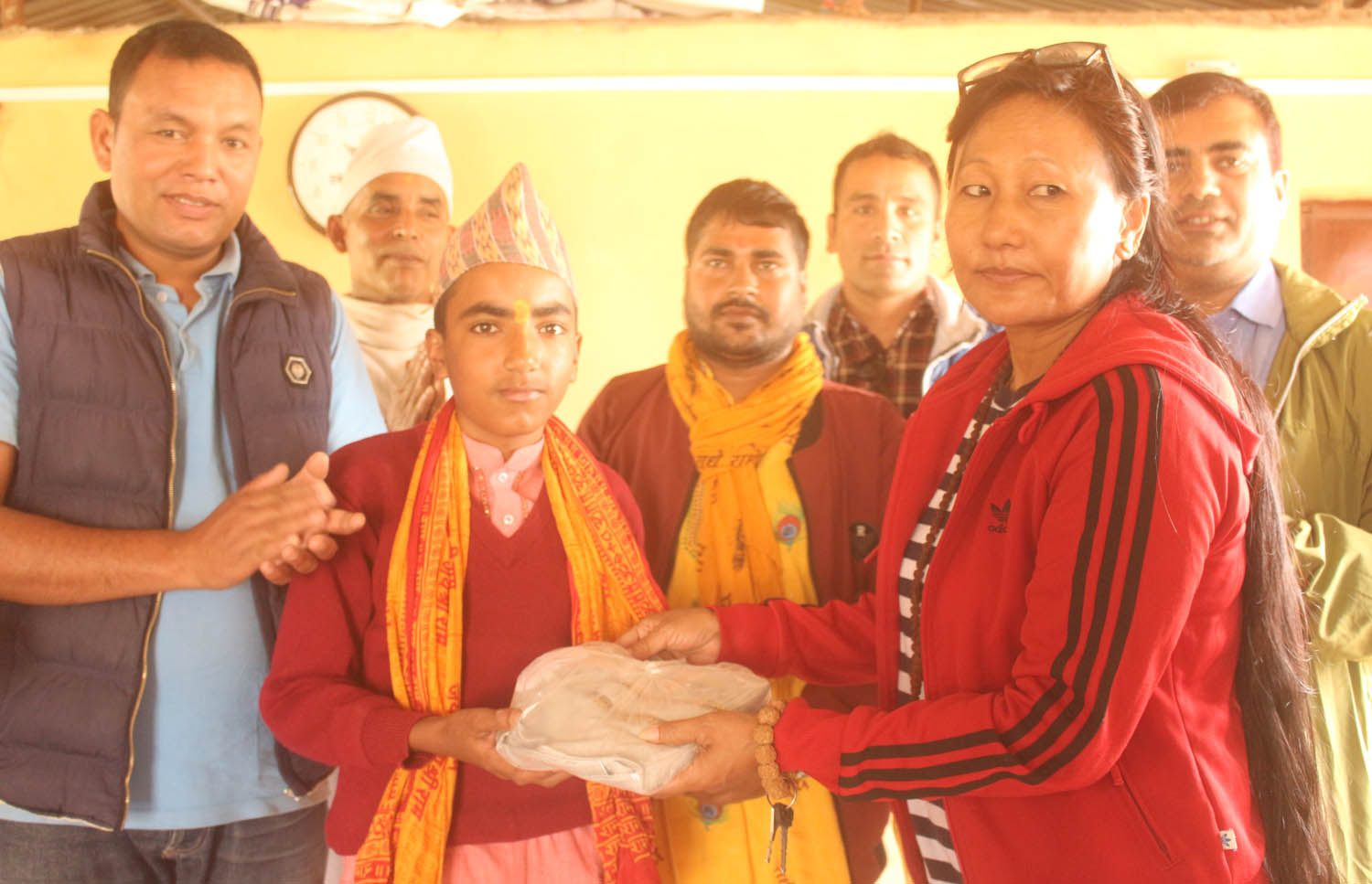 आफ्नो स्वर्गिय बाबुको स्मरण तथा स्वर्गबासको कामना गर्दै छोरीको कर्मलाई सामाजिक क्षेत्रमा परिणत गरेको उनिले बताईन । अमेरिकामा रहेको छोरा दिप कुमार निरौलाले बाजेको सम्झनालाई सामाजिक कार्यमा परिणत गर्न अमेरिकाबाट कपडा सहयोग गरी बस्त्रदान गरिएको हो ।