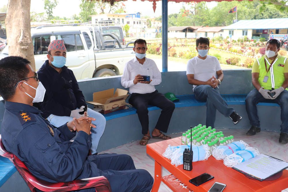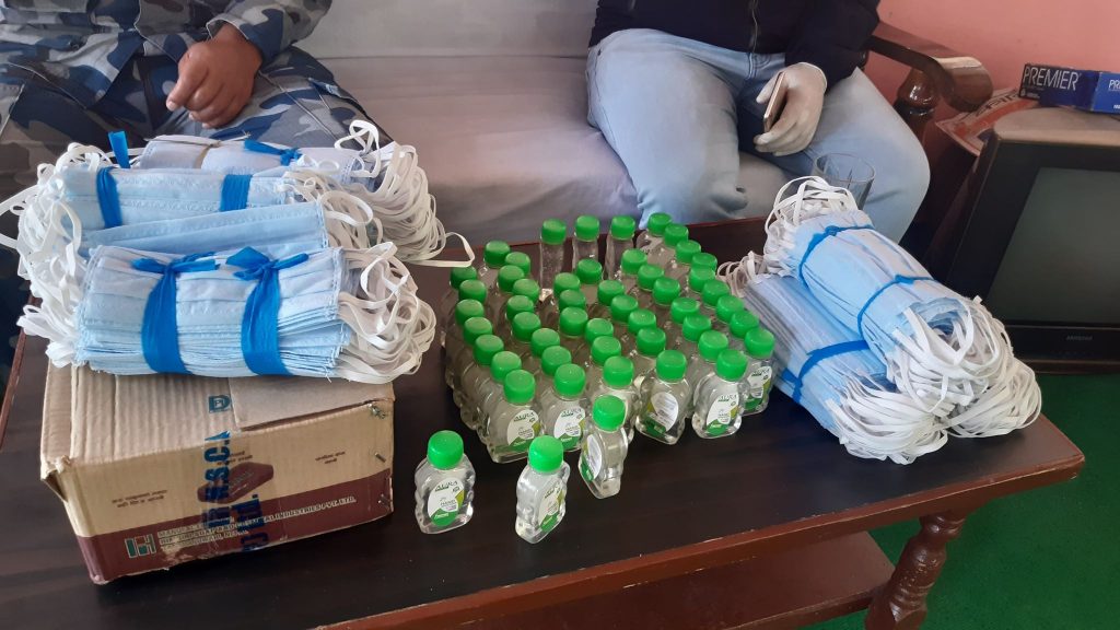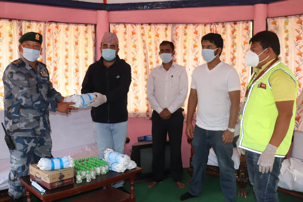 नागरिक सुरक्षाका लागि अग्रपंतीमा खट्ने सुरक्षाकर्मी अहिले कोरोना भाइरस संक्रमण विरुद्धको अभियानमा पनि अग्रपंतीमै खटिरहेका छन् । कोरोनाको संक्रमणको उच्च जोखिममा पनि खट्ने उनीहरुको स्वास्थ्य सुरक्षामा टेवा पुगोस् भन्ने हेतुले २०५५ एसएलसी ब्याजी समुह, गाइघाटले सुक्रबार सेनीटाइजर र मास्क उपलब्ध गराएको छ ।