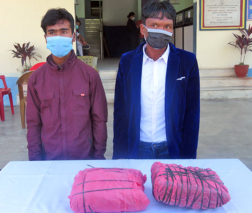 ५ किलो भन्दा बढी गाँजासहित मकवानपुरबाट दुई जना युवक पक्राउ परेको छ । जिल्लाको राक्सिराङ गाउँपालिका–५ का ४८ वर्षीय प्रेमबहादुर प्रजा र सोही गाउँपालिकाका २२ वर्षीय रविन्द्र प्रजालाइ ५ किलो ३ सय ग्राम लागुऔषध गाँजासहित प्रहरीले पक्राउ गरेको हो ।